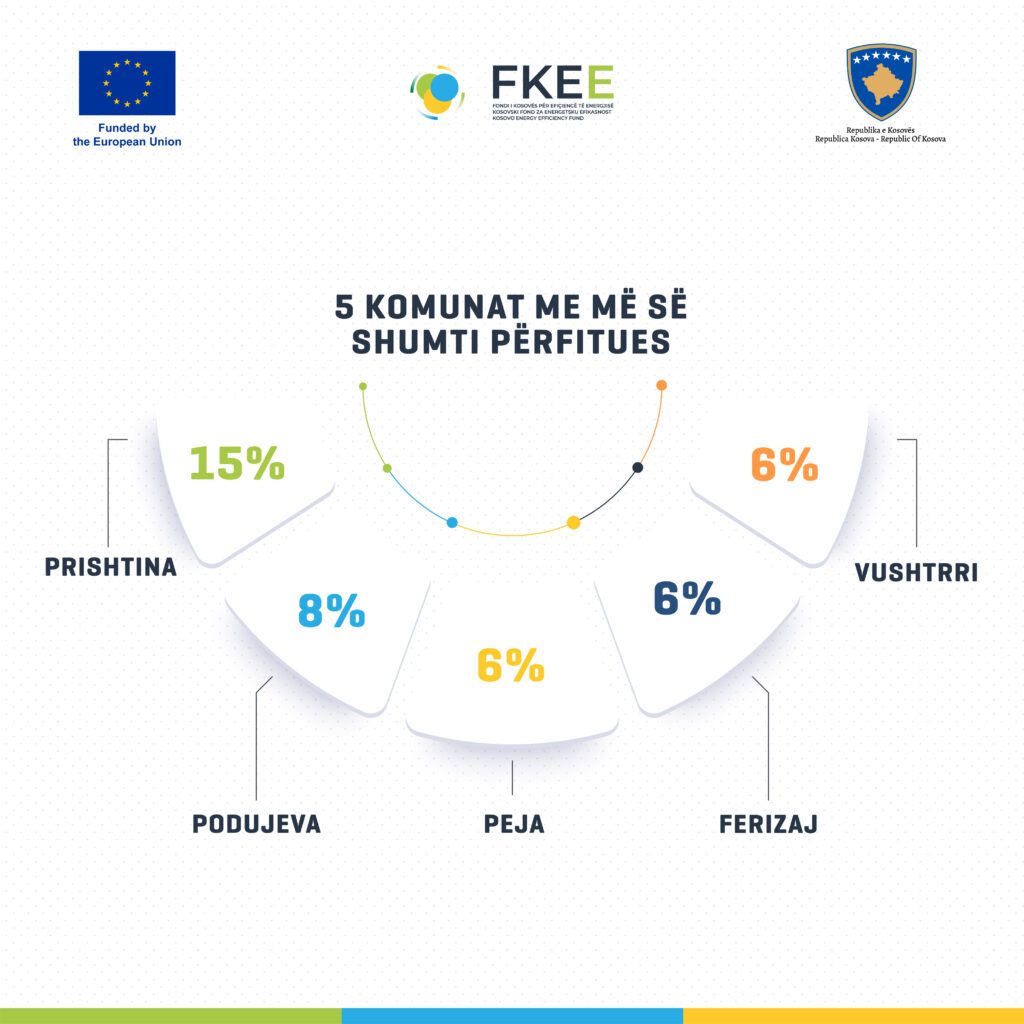 Nga data 8 deri më 20 gusht 2023, përmes platformës e-Kosova, FKEE ka pranuar 3321 aplikime, dhe pas shqyrtimit nga komisioni vlerësues, 2150 aplikantë kanë marrë para-aprovimin për fillimin e implementimit të masave të efiçiencës së energjisë. Këta aplikantë kanë pranuar “Letrën e Para-Aprovimit” dhe vërtetimin për lirim nga TVSH për blerjen e materialeve dhe kryerjen e punimeve në shtëpitë e tyre. Komunat me numrin më të lartë të përfituesve janë: Prishtina, Podujeva, Peja, Ferizaj dhe Vushtrria.